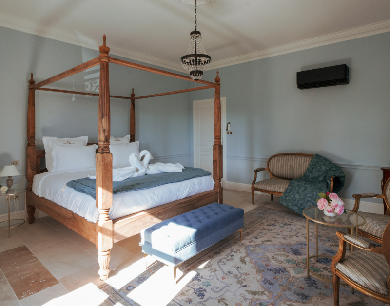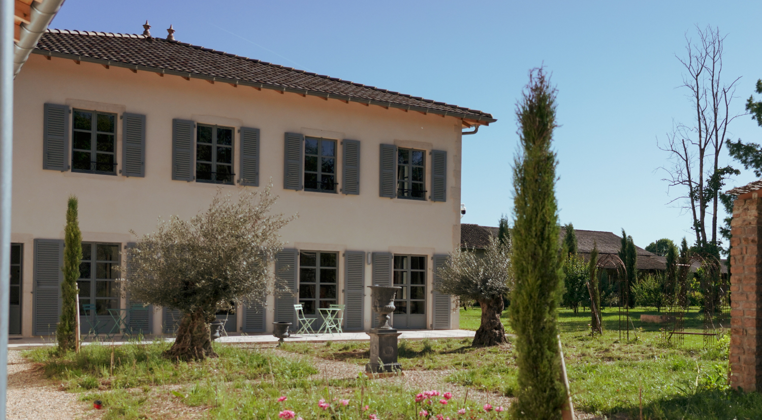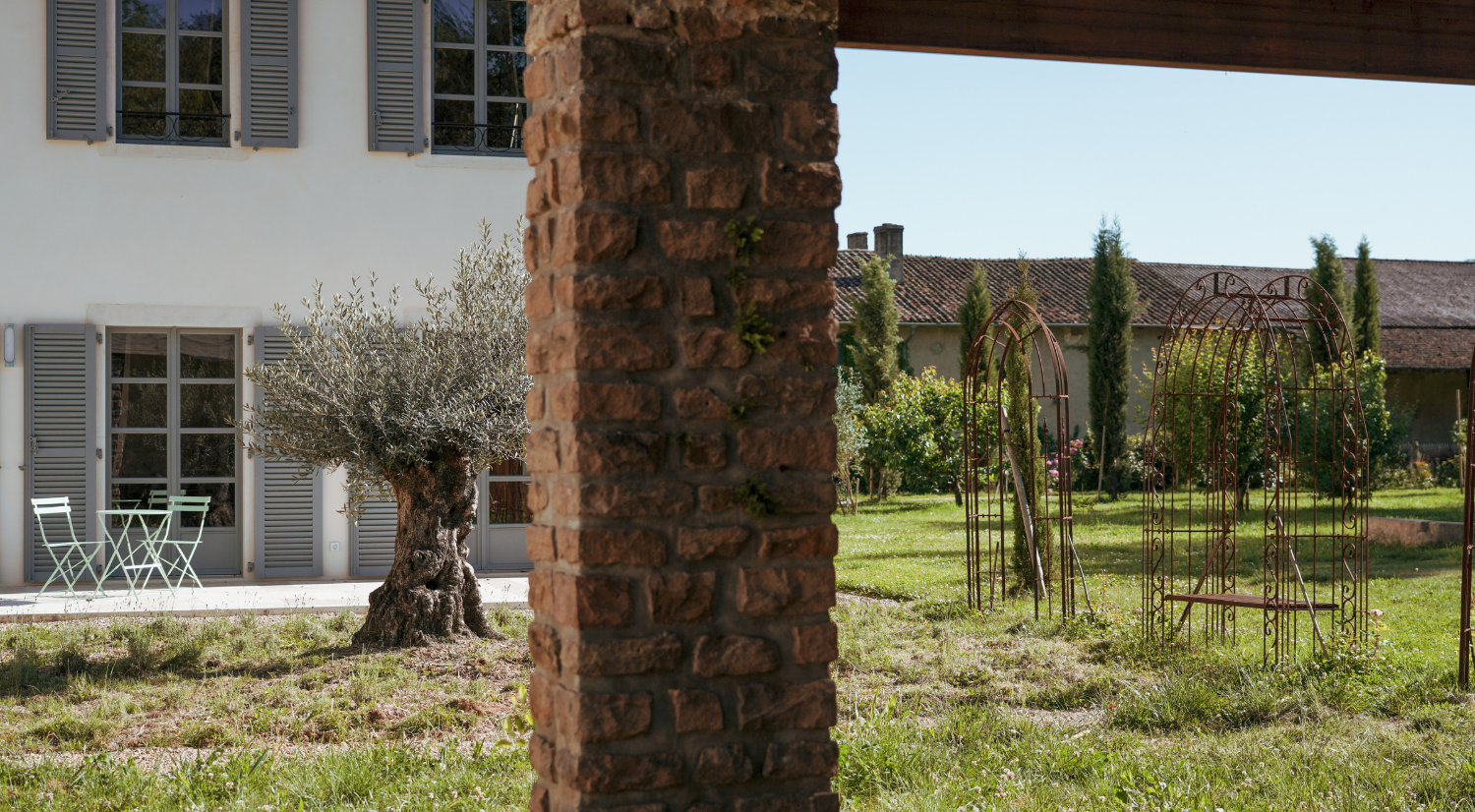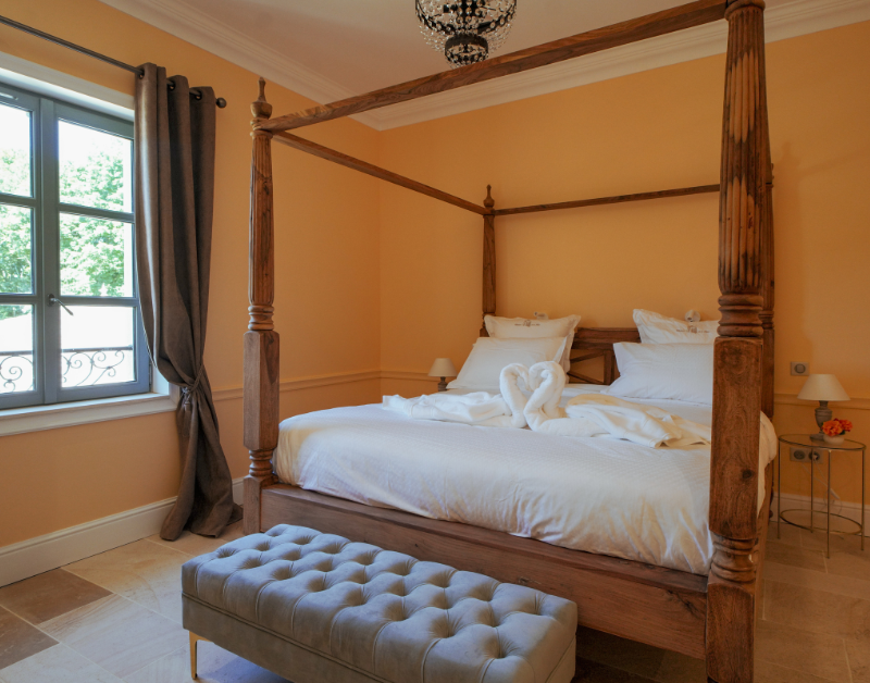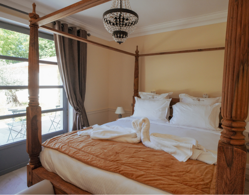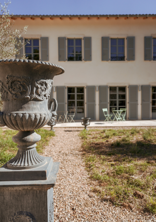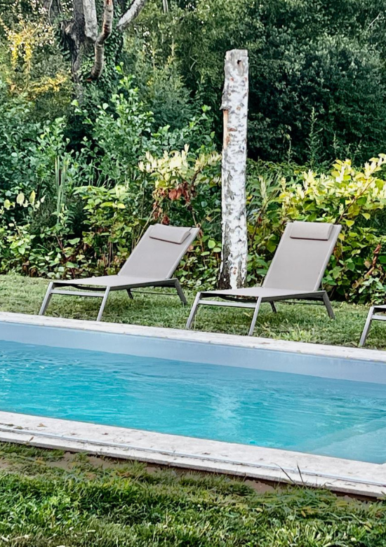 D’un côté, la maison principale. De l’autre, l’aile dédiée à nos hôtes, entièrement indépendante pour garantir calme et intimité. Au cœur du jardin du château, laissez-vous envoûter par une piscine imaginée pour le repos et la quiétude.